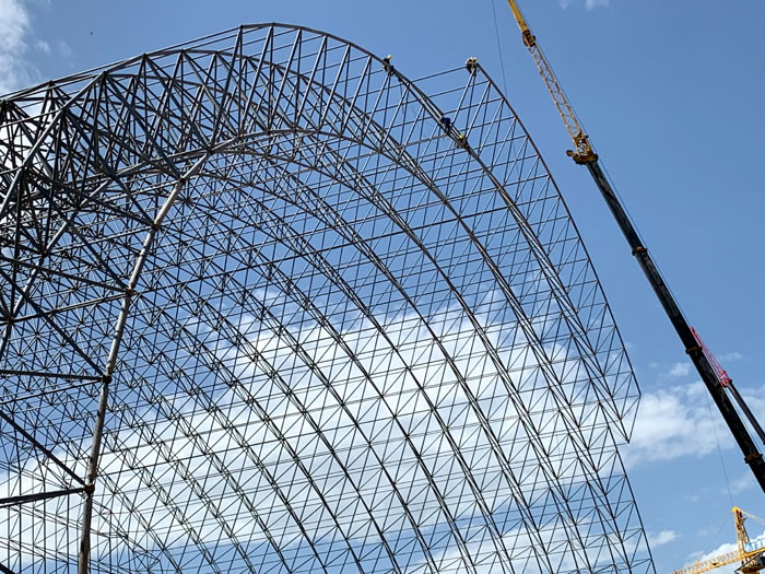 (2)网架加工前应对现场尺寸进行复测,确认无误后方可进行加工、安装;网架制作、运输、安装应遵守《空间网格结构技术规程》JGJ7-2010、《钢网架濉溪螺栓球节点》JG/T 10-2009、《钢网架濉溪螺栓球节点用高强度螺栓》 GB/T 16939-2016、《濉溪钢结构濉溪工程濉溪施工规范》 GB50755-2012、《濉溪钢结构濉溪工程施工质量验收标准》 GB50205-2020。