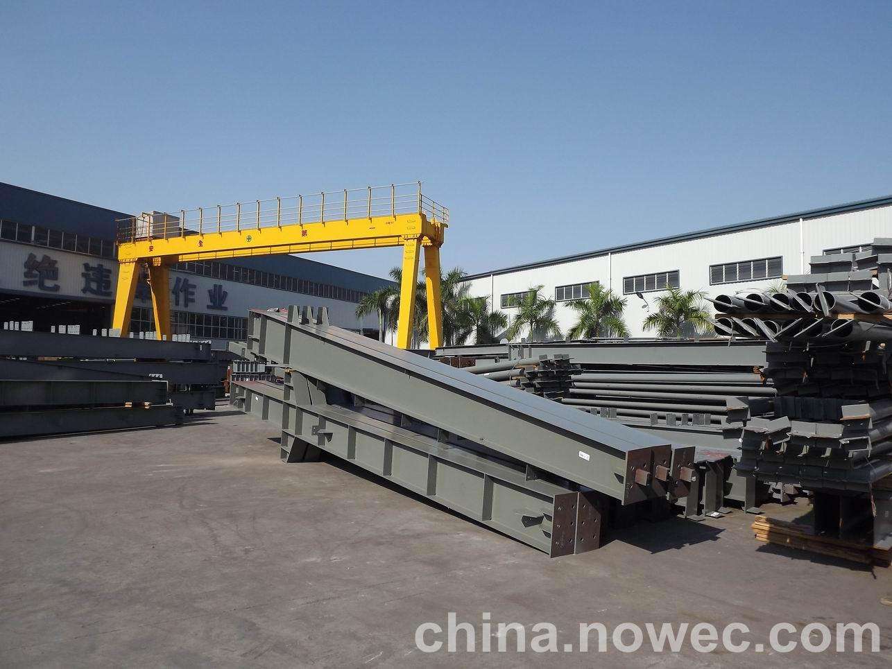 条状单元一般沿长跨方向分割,其宽度约为1~3个网格,其长度为l2或l2/2(l2为短跨跨距)。块状单元一般沿濉溪网架平面纵横向分割成矩形或正方形单元。每个单元的重量以现有起重机能胜任为准。条(块)与条(块)之间可以直接拼装,也可空一网格在高空拼装。由于条(块)状单元是在地面拼装,因而高空作业量较高空散装法大为减少,拼装支架也减少很多,又能充分利用现有起重设备,故较经济。这种安装方法适用于分割后网架的钢度和受力状况改变较小的各类中小型网架,如两向正交正放四角锥、正放抽空四角锥等网架。